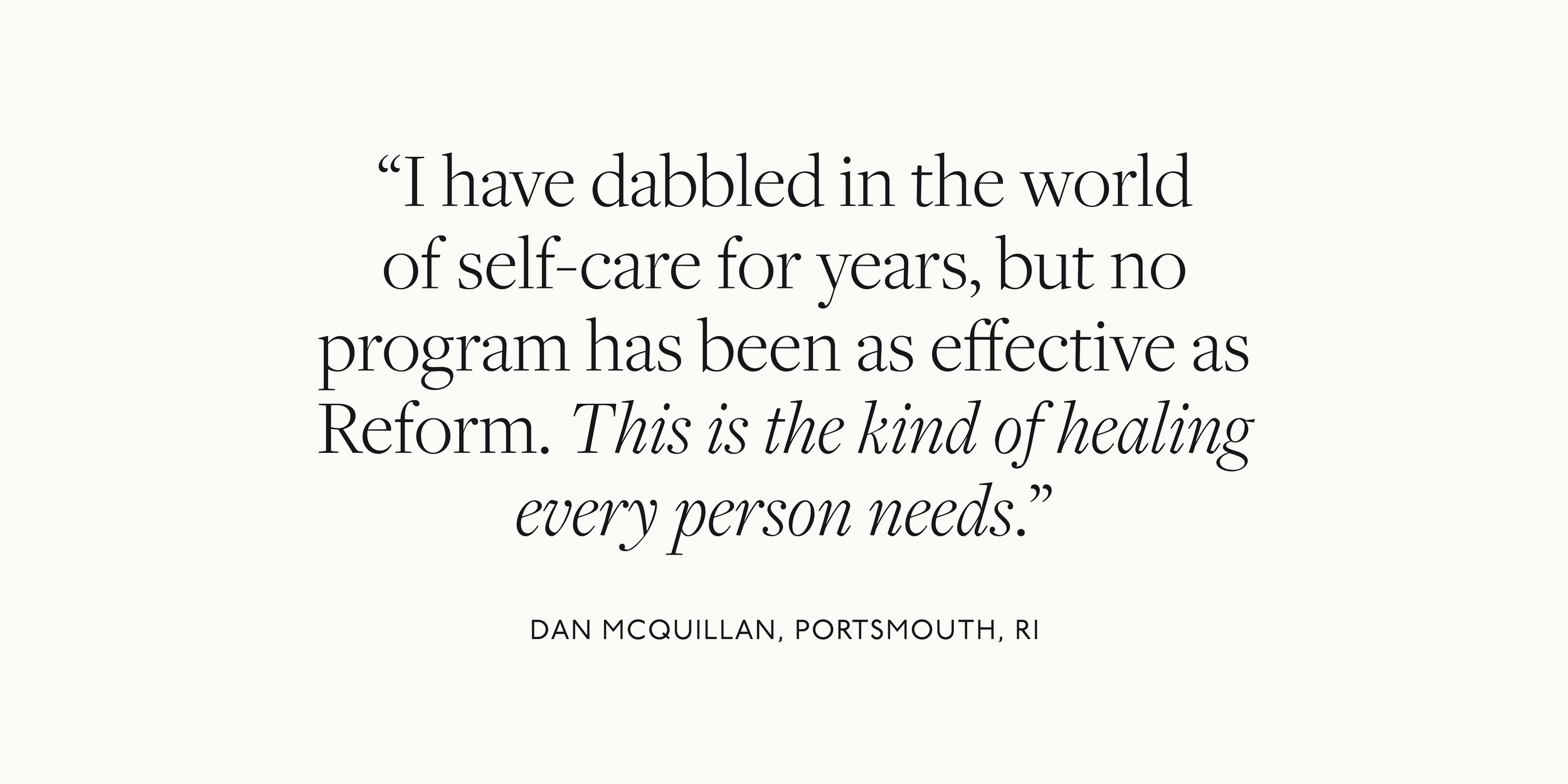 Reform Online is a twelve-week online course that focuses on all parts of your health and wellness — body, mind, and soul. Our team of certified wellness practitioners and doctors teach best practices for physical, mental, and spiritual well-being, from prayer, nutrition, and sleep to stress management, personal growth, and more. Through live course sessions, community office hours, and optional personal consultations, you can move from just surviving to thriving in all parts of yourself, inside and out.